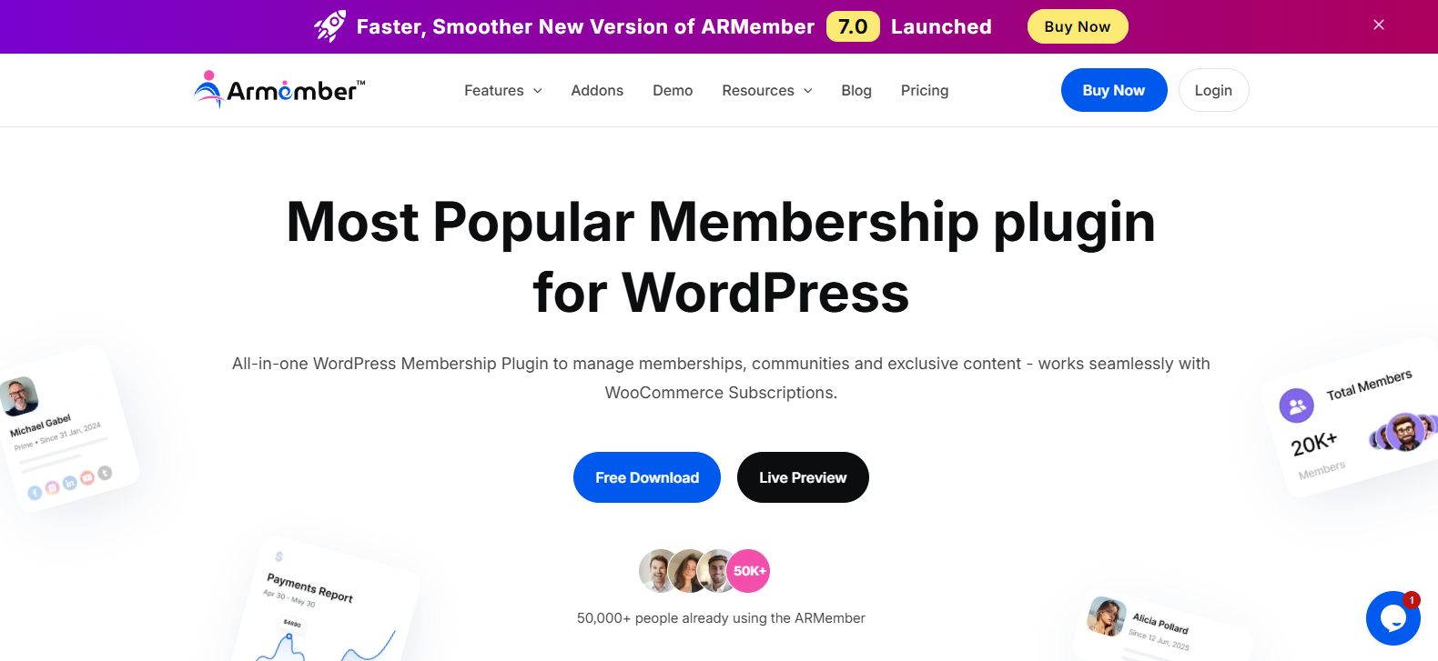 ARMember is the best WordPress membership plugin for creating membership plans, communities, and online courses, and managing subscriptions easily.